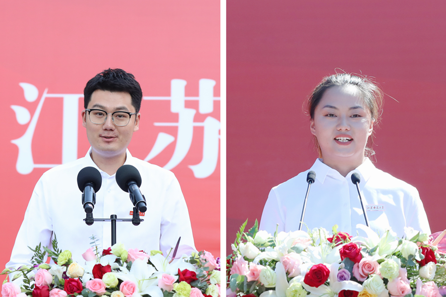 “潮平两岸阔,风正一帆悬”,大学是同学们职业生涯的开端,也是同学们航行人生这片大海的扬帆处。同时广大新同学的到来也为江苏师范大学注入了新鲜血液,为学校事业发展输送了澎湃动力。作为新生代表的数学与统计学院2023级本科生吴钰同学和教育科学学院2023级本科生曹佳怡同学分别发言,她们号召全体同学树立远大理想、努力学习本领,为建设富强民主文明和谐美丽的社会主义现代化国家而奋斗。
