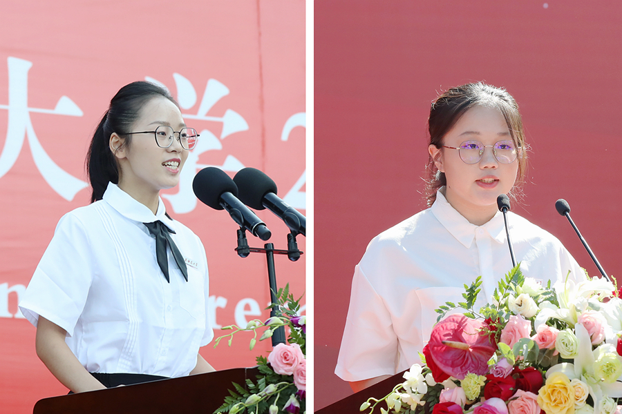 吴钰和曹佳怡两位同学作为新生代表分别发言