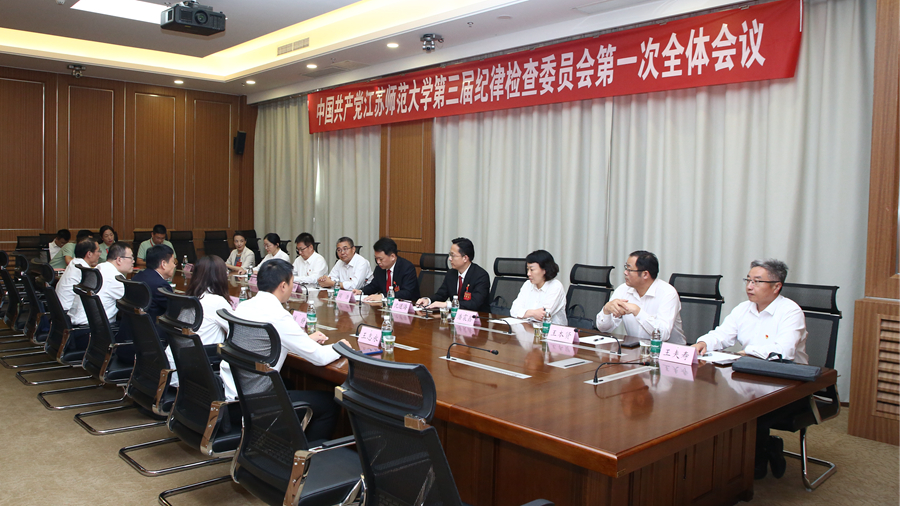 9月21日下午,中国共产党江苏师范大学第三届纪律检查委员会举行第一次全体会议,受中国共产党江苏师范大学第三次党员代表大会主席团的委托,闾浩同志主持会议。省委督导组到会督查指导。会议选举产生中国共产党江苏师范大学第三届纪律检查委员会书记和副书记。