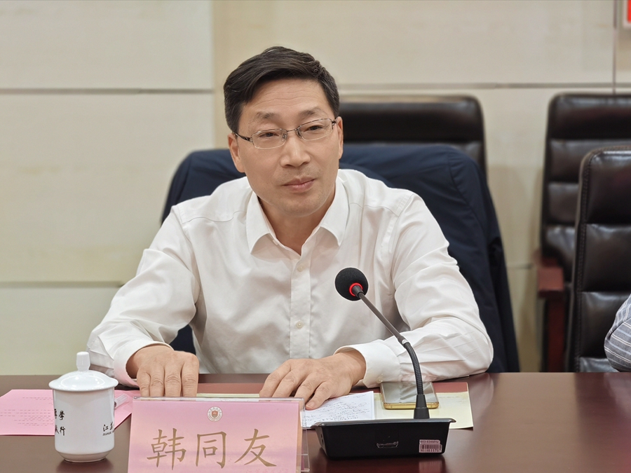 蔡国春对韩同友一行来访表示热烈欢迎,并简要介绍了我校的办学历史、发展现状。他表示,江苏师范大学多年来坚持“党建带关建”,把关工委工作纳入党政工作运行轨道,与学校人才培养中心任务“深度融合”,持续提升关工委在学校人才培养中的特殊作用,取得了一定的工作成效。他指出,淮阴师院和江苏师大同属师范院校,两校不仅在人才培养、科学研究、学科建设等方面有着长期的交流合作,在关心下一代工作领域也应持续加强沟通对接,实现资源共享,优势互补,共同进步。