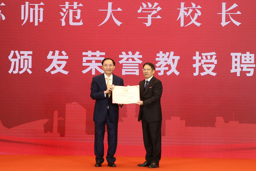 周汝光向林高演颁发江苏师范大学荣誉教授聘书