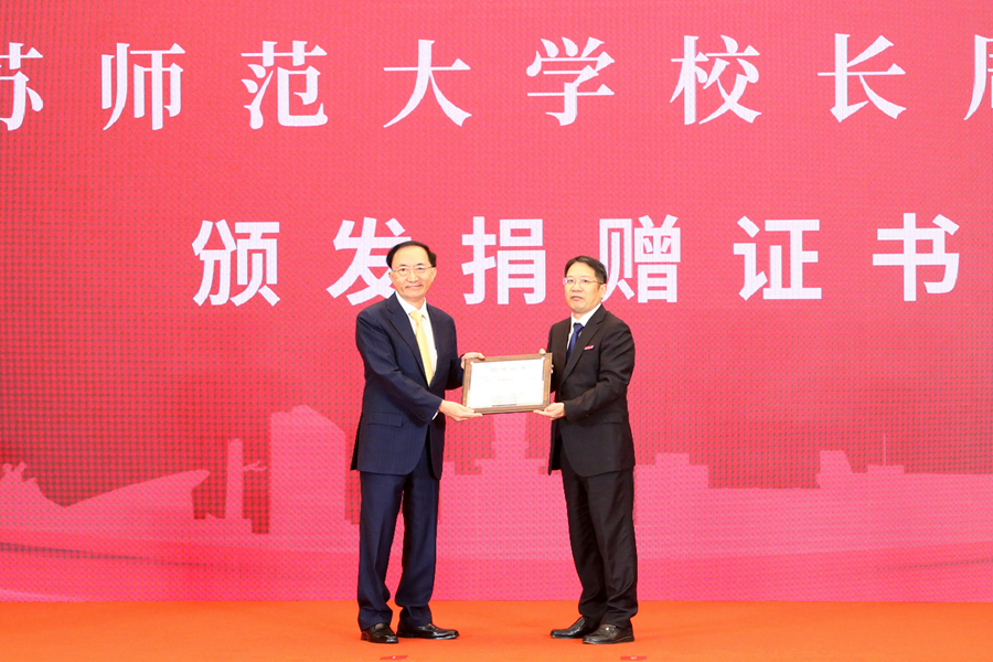 随后,林高演代表香港智华基金正式向我校捐赠人民币3000万元,校长周汝光代表学校接受捐赠。捐赠仪式上,周汝光向香港智华基金颁发捐赠证书、向林高演先生颁发江苏师范大学荣誉教授聘书,向香港智华基金有限公司顾问潘旭波先生颁发江苏师范大学教育发展基金会荣誉理事聘书。