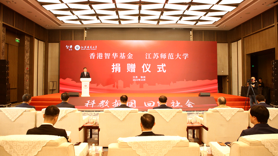 香港智华基金在苏首个捐助项目落户我校,10月19日上午,捐赠仪式顺利举行。香港智华基金有限公司主席林高演出席捐赠仪式并讲话。江苏省政协副主席胡刚、徐州市政协主席王强、教育部港澳台办公室副主任舒刚波、徐州市人民政府副市长钟卫华、徐州市政协副主席李靖华出席活动。中国科学院院士、我校数学研究院院长陈木法,校党委书记方忠,校长周汝光参加活动。仪式由校党委常委、副校长商亮主持。