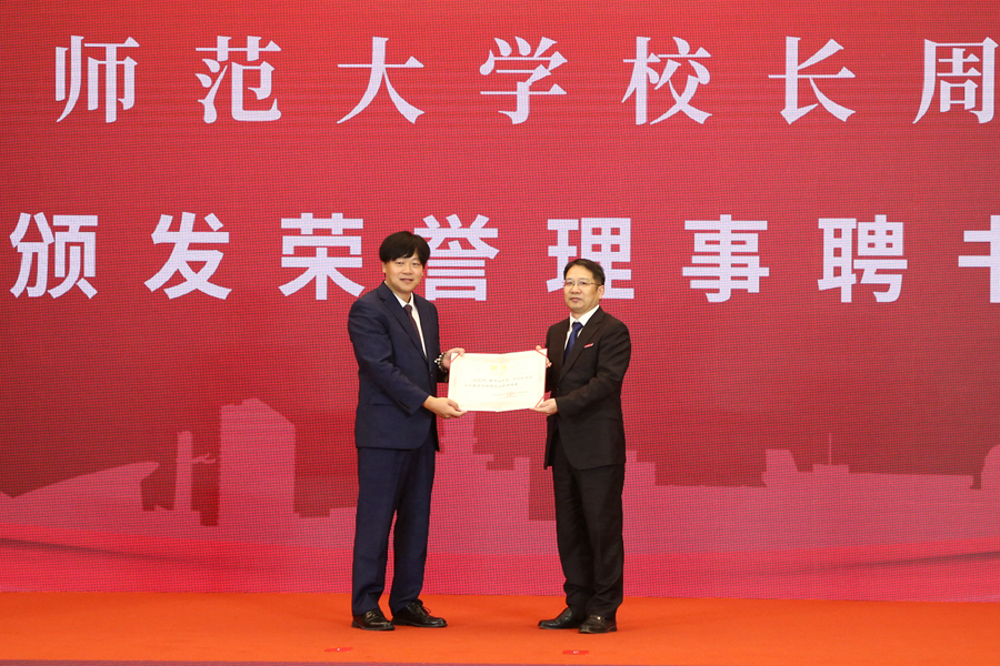 周汝光向潘旭波颁发江苏师范大学教育发展基金会荣誉理事聘书