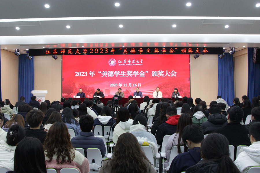 11月16日下午,我校2023年“美德学生奖学金”颁奖大会在泉山校区举行。江苏省教育基金会秘书长魏巨龙,校党委常委、副校长张玉勤,以及相关职能部门负责人出席会议,全体获奖同学及各学院辅导员、学生代表参加了会议。