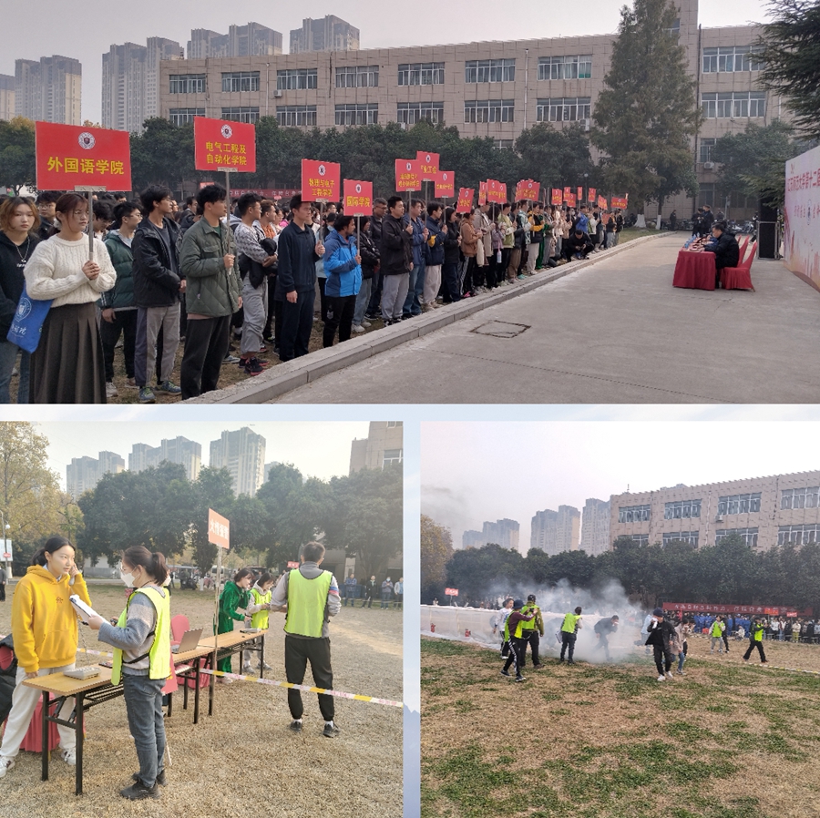 11月22日下午,学校第十二届消防运动会在泉山校区敬文图书馆北侧足球场成功举办。校党委常委、副校长张玉勤,徐州市消防救援支队副支队长姜浩,火调技术科科长汪永路,校保卫处、体育学院等单位有关同志出席活动。全校30个代表队500余名运动员参加了比赛。