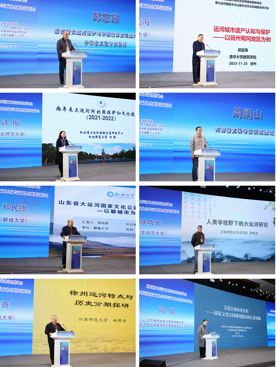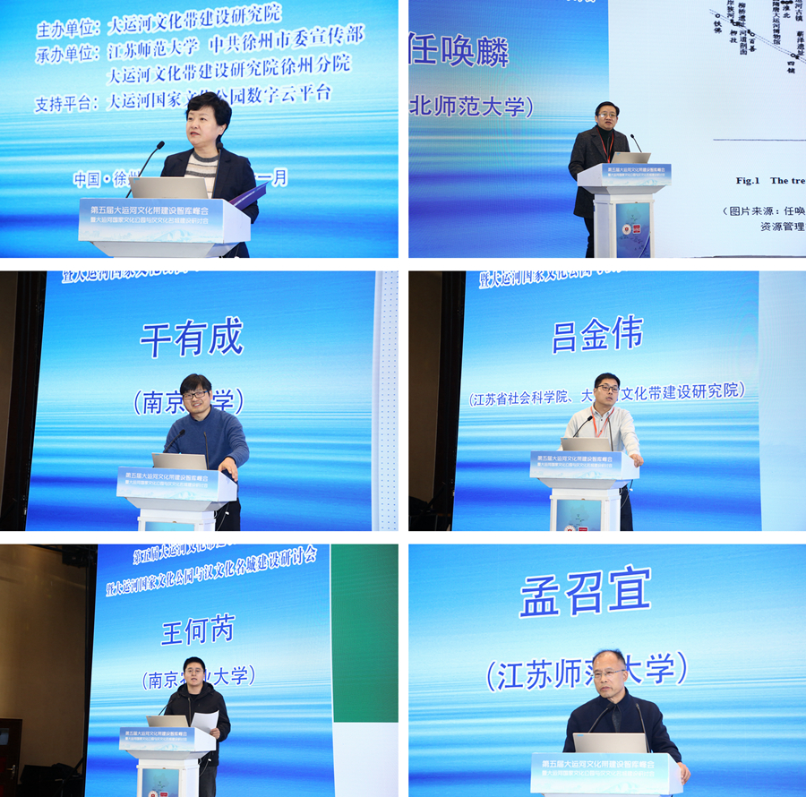 大会主旨报告会由我校党委书记、大运河文化带建设研究院徐州分院院长方忠主持。清华大学建筑学院教授武廷海,河南省文物考古研究院馆员周润山,聊城大学运河学研究院副院长郑民德等7位专家学者,围绕“大运河文化带建设”主议题进行主题演讲,就大运河保护传承利用、运河城市遗产认知与保护、大运河国家文化公园建设、人类学视野下的大运河、运河特点及历史分期等内容进行研讨。专题报告会由校党委常委、副校长娄峥嵘主持。6位与会专家学者围绕“大运河国家文化公园与汉文化名城建设”主题,从不同角度对国家文化公园规划建设实践、大运河国家文化公园文旅融合高质量发展进路、大运河与长江国家文化公园协同融合建设、凝练打造大运河共性文化精神标识、大运河意向符号建构、汉文化名城的内在逻辑与实践路径等方面进行了阐述。圆桌沙龙阶段,8位与会专家学者围绕“国家文化公园助推汉文化名城建设”主题,分别从各自专业视角进行专家对话和发言讨论。