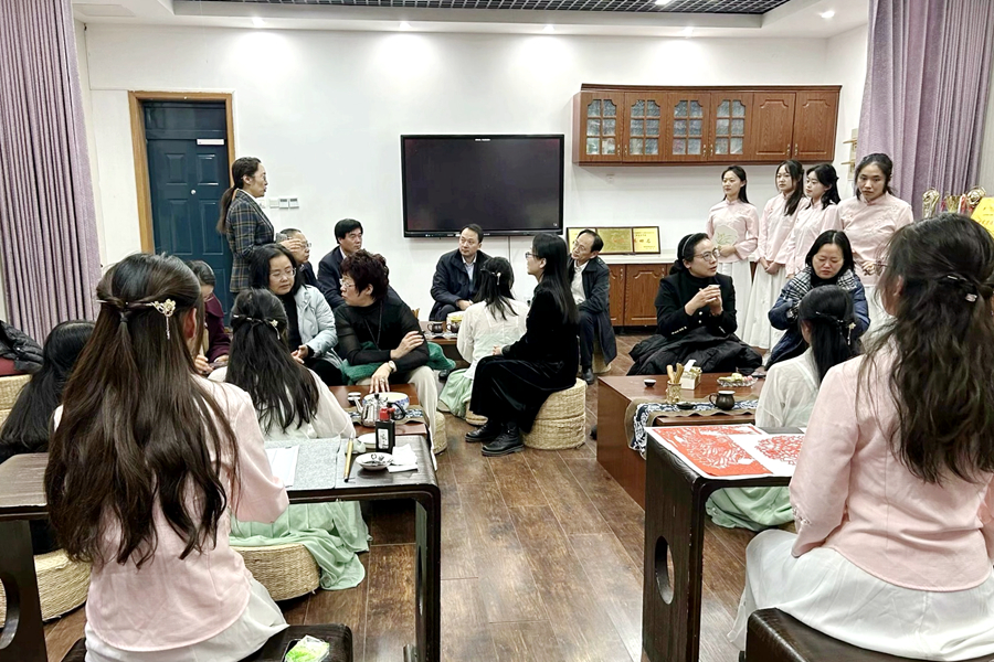 我校工会、妇联主要负责同志就机构设置、特色亮点等调研内容先后作了汇报,双方与会人员还围绕工会、妇联工作的实际情况以及今后工作思路等进行了充分交流。座谈会后,与会人员观摩体验了工会妇联特色项目“一会一品”女教职工扎染活动、雅润女子学堂女大学生茶艺展示活动。