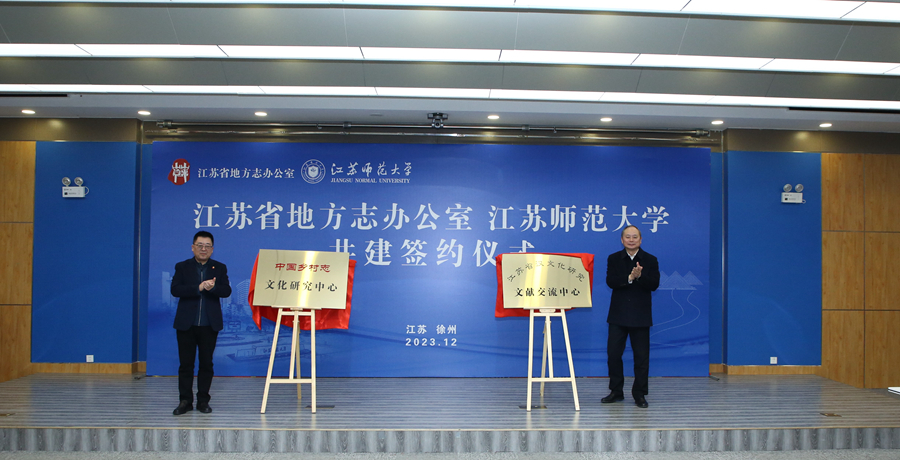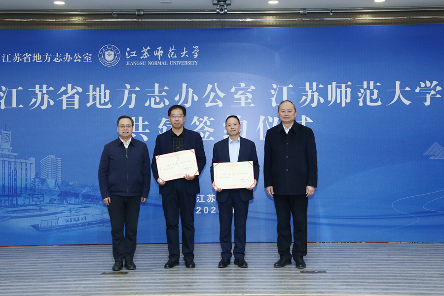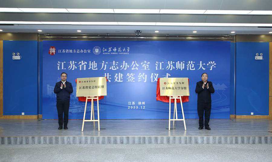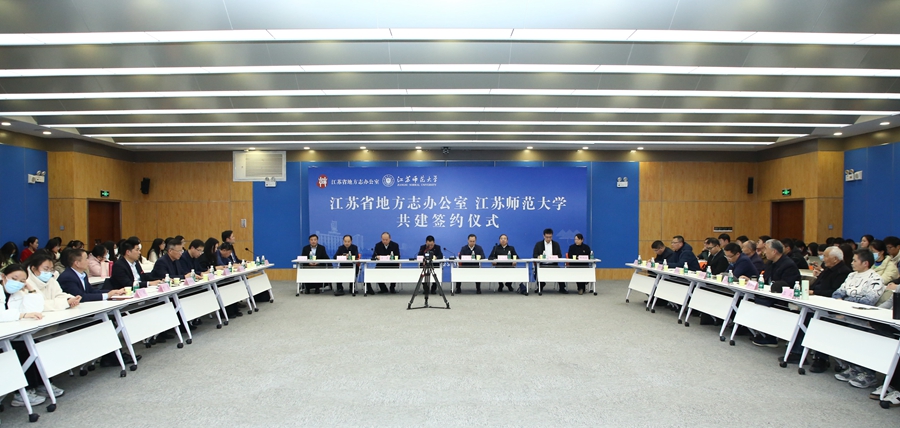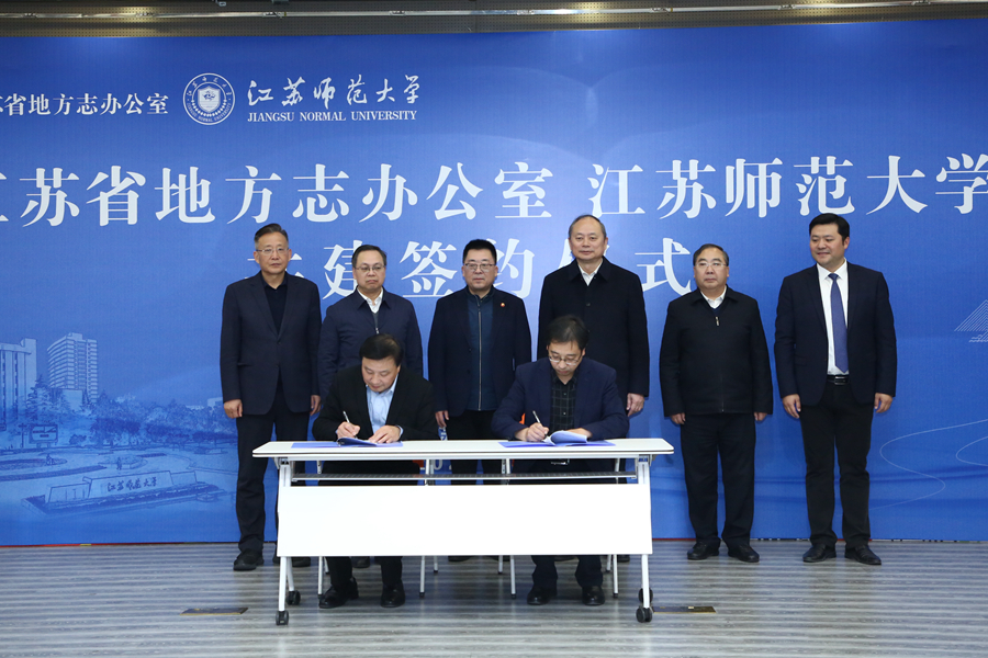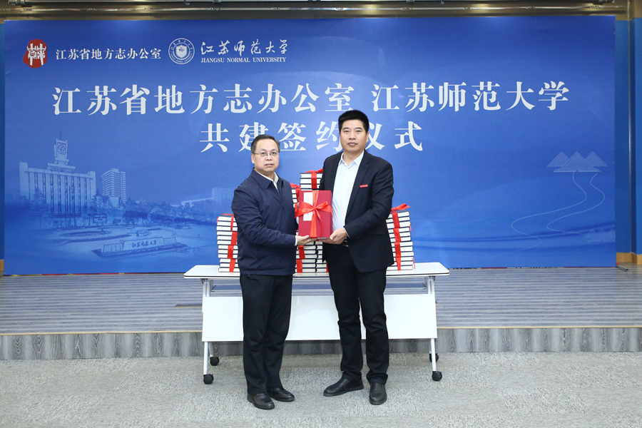 江苏省地方志办公室代表和江苏师范大学代表共同签署了合作共建协议,省方志办向江苏师大捐赠《江苏历代方志全书》等珍贵文献近500册。根据共建协议,双方将全面共建共享地方志研究资源,共同致力于徐州乡村志的发掘、保护、整理和研究工作,为生动讲好山乡巨变的“江苏故事”,谱写“强富美高”新江苏建设现代化篇章提供有力支撑。签约仪式后,我校与江苏省方志办召开了共建工作座谈会,校党委书记方忠、省方志办党组书记、主任左健伟出席,校相关学院、相关职能部门负责人参加会议。签约仪式开始前,方忠陪同与会领导考察调研了江苏师范大学校史馆、中华家文化研究院和文学院中国乡村志文化研究中心。