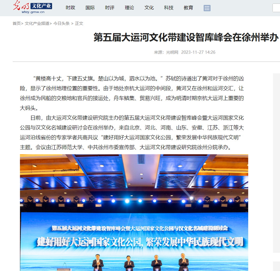 光明网11月27日报道我校承办的第五届大运河文化带建设智库峰会,报道内容如下: