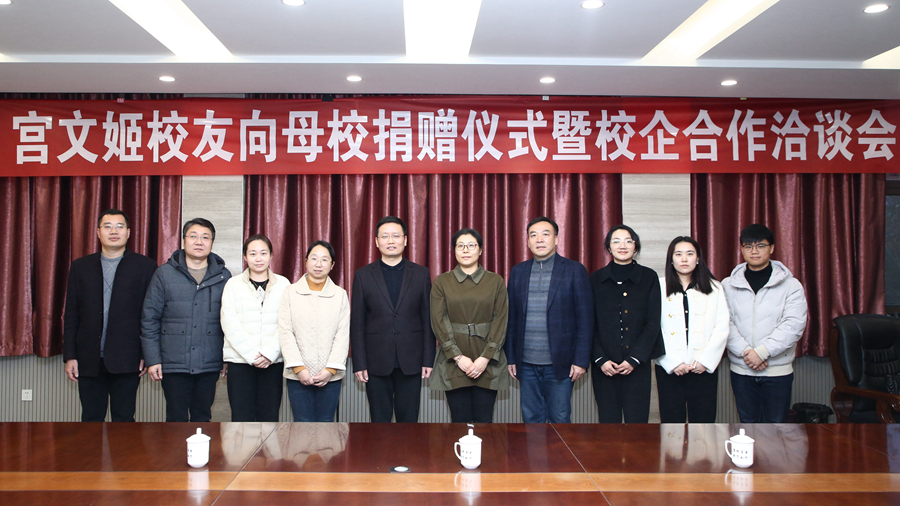 仪式上,宫文姬校友与学校签订了捐赠协议,并现场进行了捐赠。商亮代表学校向宫文姬校友颁发捐赠证书。仪式结束后,校企双方就人才培养、科技服务、校企合作等进行商讨洽谈,双方与会人员表示将充分发挥各自优势,拓展合作空间,深化共享协作,实现共赢发展。