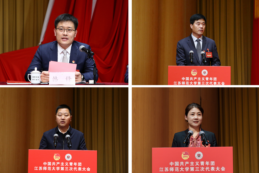共青团江苏省委副书记熊俊代表共青团江苏省委向大会的召开表示热烈的祝贺,对江苏师大青年师生致以诚挚的问候。他指出,江苏师大各级团组织主动融入“三全育人”大思政工作格局,积极投身学校高水平大学建设,团结引领全校青年师生勇担使命、扎实奋斗,为学校各项事业高质量发展作出积极贡献,为全省共青团工作提供了有效经验。熊俊希望我校共青团今后坚持用党的创新理论武装青年,引导青年坚定信念、把牢航向;坚持把握“先锋力量”的内在要求,动员青年挺膺担当、奋勇争先;坚持大抓基层的鲜明导向,着力加强团组织和团干部队伍建设。他号召新时代江苏师范大学青年要始终与党同心、紧跟党走,挺膺担当、勇毅前行,为推动高质量发展走在前列、谱写“强富美高”新江苏现代化建设新篇章贡献更大青春力量。