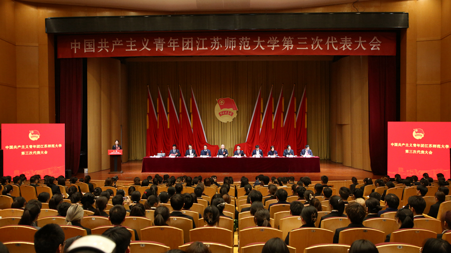 12月6日,共青团江苏师范大学第三次代表大会在马可音乐厅隆重召开。校党委书记方忠,共青团江苏省委副书记熊俊,校党委常委、副校长张玉勤,共青团徐州市委书记韩锋出席开幕式,团省委高校工作部相关负责人,各兄弟高校团委主要负责人,我校省第十六次团代会代表、市第二十次团代会代表,省、市青联委员,校相关部门负责人以及部分老团干代表参加开幕式。大会还收到了来自南京大学、浙江大学、中国海洋大学、四川大学、云南大学、西安交通大学、兰州大学等兄弟高校团委的共计46封贺信。