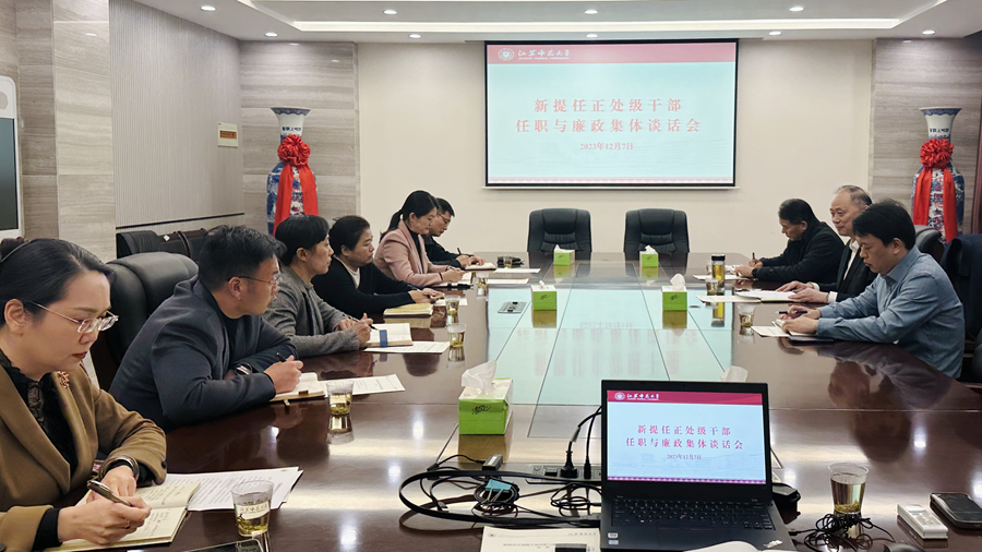 12月7日下午,我校在3号楼402会议室举行新提任正处级干部任职与廉政谈话会。校党委书记方忠、纪委书记闾浩出席会议,党委组织部部长黄德志主持集体谈话会。