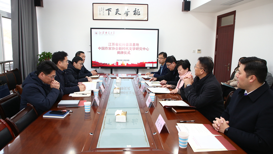 12月20日上午,省社科普及基地揭牌仪式暨省社科评奖文学专场调研会在江苏师范大学举行。省社科联党组成员、副主席许益军,省社科联科普部(评奖办)主任朱建波,省社科联科普部(评奖办)三级调研员路胜利,徐州市社科联副主席宋宜平出席揭牌仪式,我校党委常委、副校长娄峥嵘,党委常委、组织部部部长、统战部部长黄德志,人文社会科学研究院和文学院相关负责同志陪同调研并参加座谈。