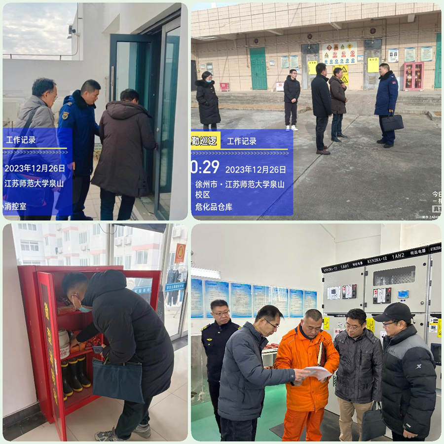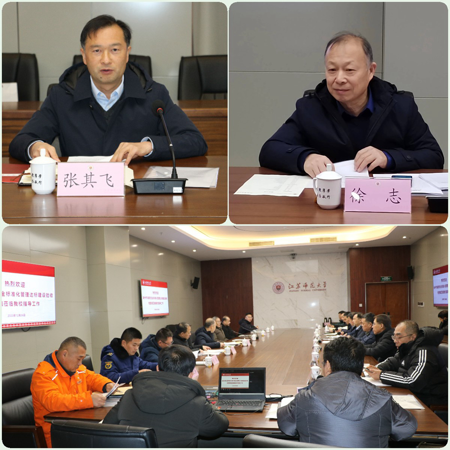 按照省、市统一部署,12月26日上午,以徐州市教育局副局长徐志为组长的市消防安全标准化管理达标建设验收检查组一行8人莅临我校检查指导消防安全工作。校党委常委、副校长张其飞出席汇报会,校长办公室、研究生院、学生工作处、实验室与设备管理处、后勤管理处、基建处、后勤集团、保卫处等单位负责同志陪同检查。