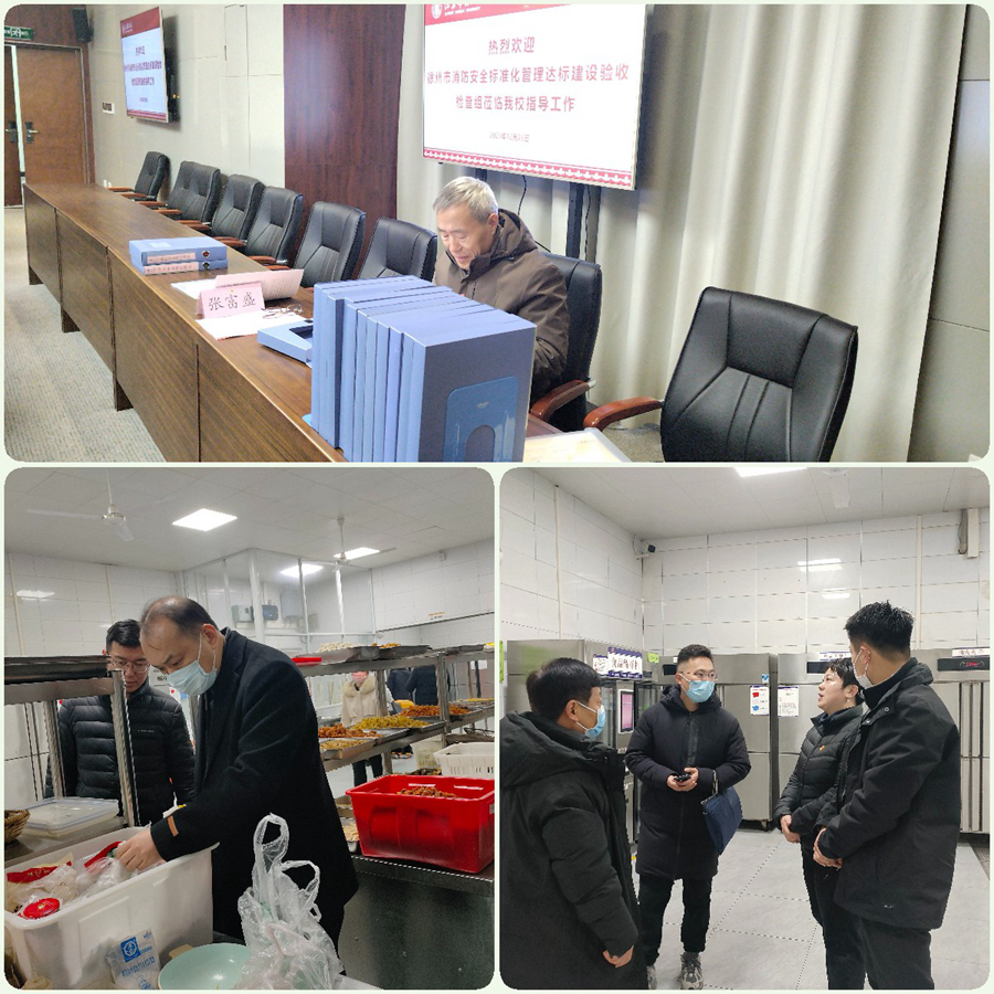 张其飞代表学校对检查组的到来表示热烈欢迎,对市教育、公安、消防等单位对我校安全工作给予的关心、支持和帮助表示衷心的感谢,希望检查组多提宝贵意见和建议,助力我校高质量平安校园建设。张其飞重点从学校四级安全生产责任体系、常态化安全检查工作机制、消防管理技防能力建设、师生安全教育演练情况等四个方面介绍了学校消防安全管理及标准化建设情况。随后,检查组查阅了工作台账,现场检查了消控指挥中心、校园监控110指挥中心、危化品库、理工科实验室、高压配电室、学生食堂、敬文图书馆、学生宿舍等消防安全重点部位和场所。