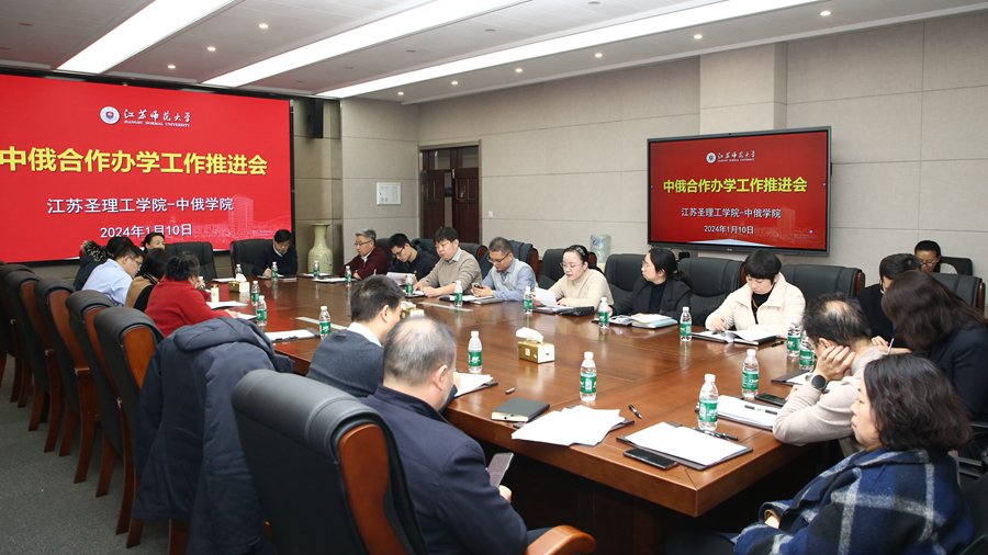 1月10日,我校中俄合作办学工作推进会在泉山校区召开。推进会由江苏圣理工学院-中俄学院牵头举办,主题为“共商共建共赢,做实做深做强中俄合作办学”,合作办学单位物理与电子工程学院、商学院、机电工程学院、电气工程与自动化学院领导班子成员参会,共商合作办学工作事宜。校党委常委、副校长董晓臣出席会议。