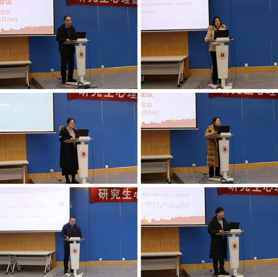 会上,学校心理健康教育中心负责同志分析了目前心理健康教育管理形势;各研究生培养单位围绕研究生教育管理和心理健康存在的问题、原因、对策和打算进行交流发言;研工部负责同志通报了研工组近期工作,研讨修订《关于进一步加强研究生心理健康教育管理工作的意见》;学生处负责同志对有序有力推进心理健康教育管理工作提出了具体要求和建议。