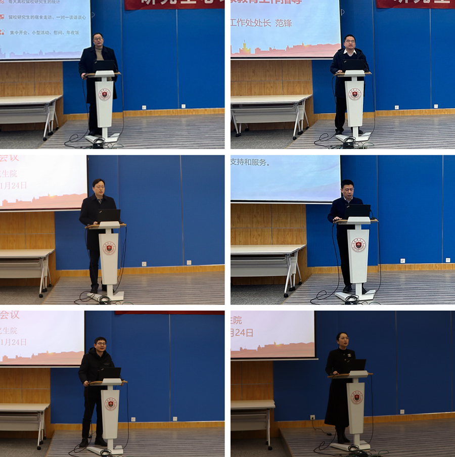 1月24日上午,研究生心理健康教育管理工作会议在泉山校区分析测试中心300会议室召开。副校长杜增吉,研究生院、研工部相关领导,学生工作处相关领导,各研究生培养单位研究生教育管理工作组组长等相关领导参加会议。