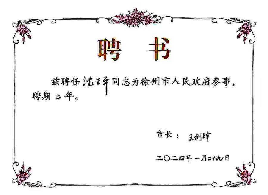 2月27日下午,徐州市政府参事聘任仪式在新城区行政中心举办,徐州市市长王剑锋向15位受聘市政府参事颁发聘书并讲话。我校“一带一路”研究院执行院长沈正平教授受聘徐州市政府参事,这是他第三次获聘。
