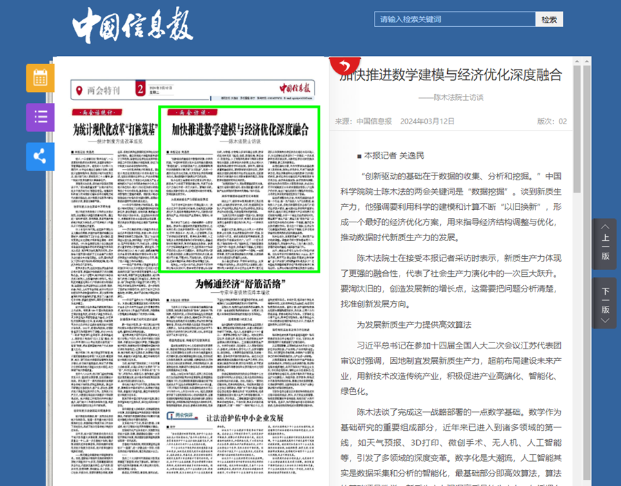 中国信息报3月12日报道对我校陈木法院士的访谈,报道内容如如下: