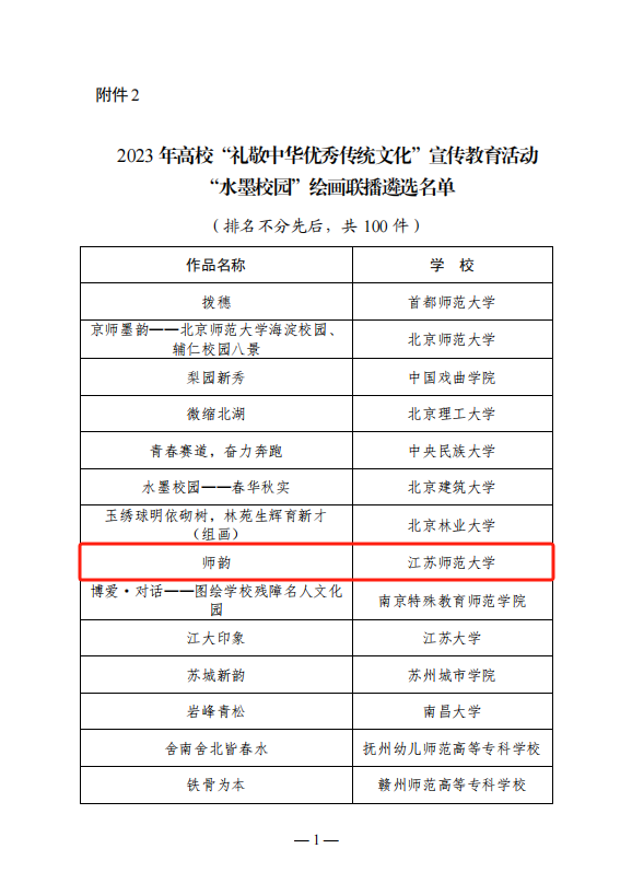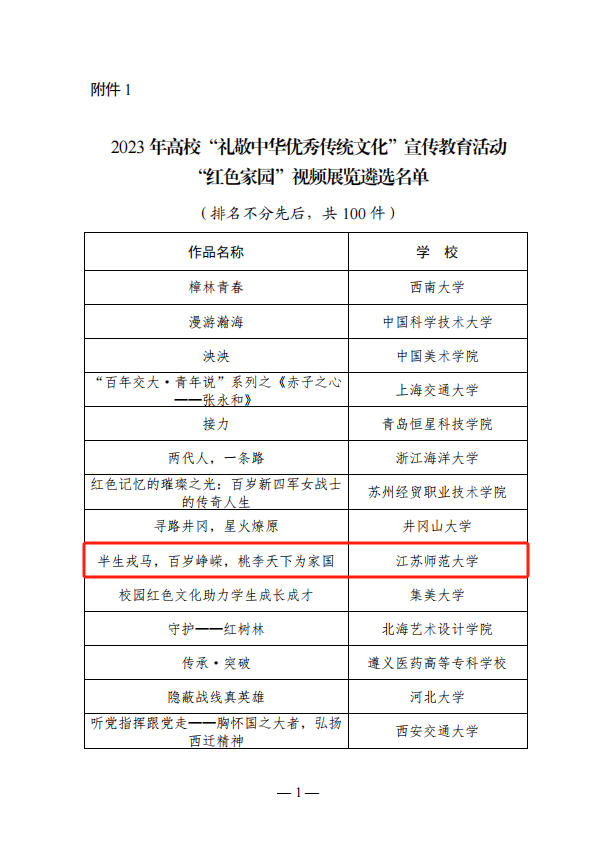 近日,教育部公布了2023年高校“礼敬中华优秀传统文化”宣传教育活动评选结果,我校选送的关工委作品《半生戎马百岁峥嵘 桃李天下为家国》获选“红色家园”视频展览遴选名单,美术学院作品《师韵》获选“水墨校园”绘画联播遴选名单。
