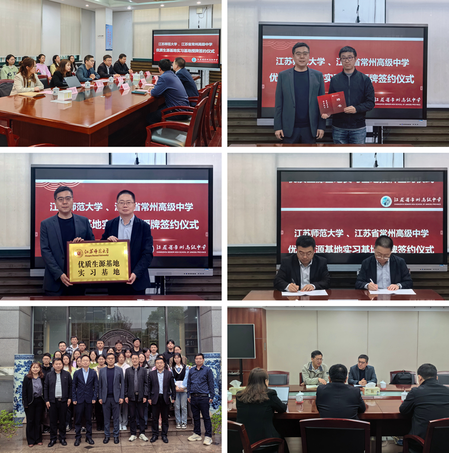 随后,教务部部长沙先一与常州高级中学签订合作协议,赵鹏为江苏省常州高级中学进行“江苏师范大学优质生源基地·实习基地”授牌,并向常州高级中学实习指导教师颁发聘书。最后,文学院、数学与统计学院、生命科学学院、地理测绘与城乡规划学院等实习生代表分享在实习基地的实习心得和体会。