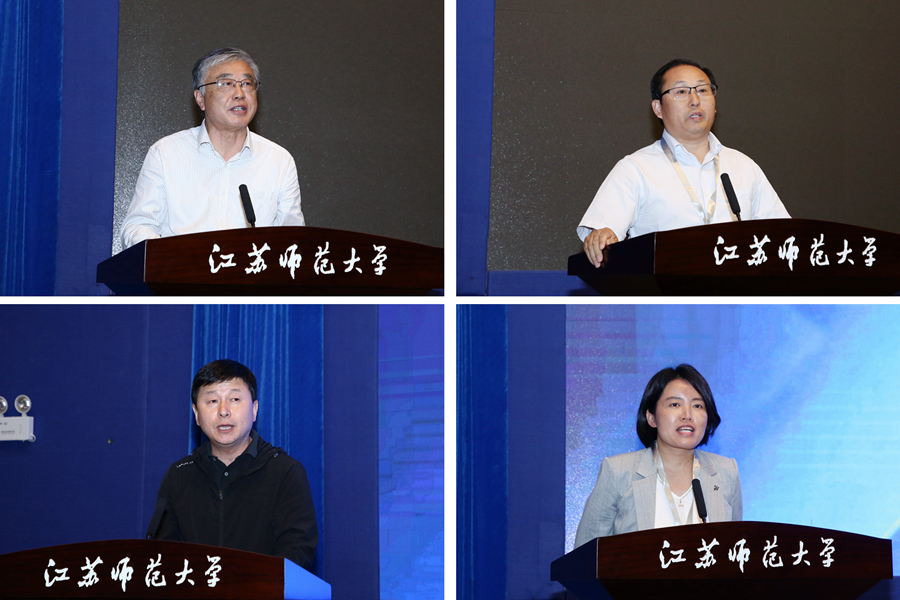 王海啸代表江苏省高等学校外国语教学研究会致辞,评委代表苏州大学外国语学院院长朱新福、淮阴工学院外国语学院院长孙建光、南京农业大学外国语学院副院长马秀鹏、金陵科技学院外国语学院副院长李凤对各组赛况进行了点评。