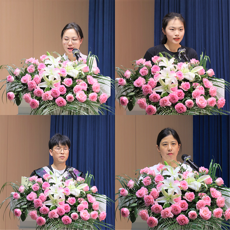 毕业生代表2020级数学与应用数学师范班盛屹涛,在校生代表21级汉语言文学师范班梁译文,优秀院友代表上海向东中学教师张子涵,家长代表2020级汉语言文学师范班何嘉欢母亲陈燕,导师代表化学与材料科学学院渠陆陆教授依次发言。