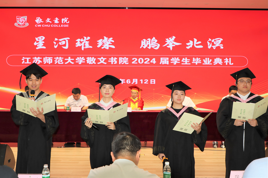毕业生代表用原创诗朗诵《我曾经,在那时遇见敬文》深情追忆四年里求学生活的点点滴滴,表达了对书院的眷恋与感恩。