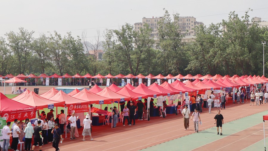 6月27日,江苏省2024年高考考生职业生涯与志愿填报指导咨询会(徐州分会场)在我校泉山校区田径场举办,来自全国的近150所高校和周边地区的11000多名考生及家长参加了咨询会。