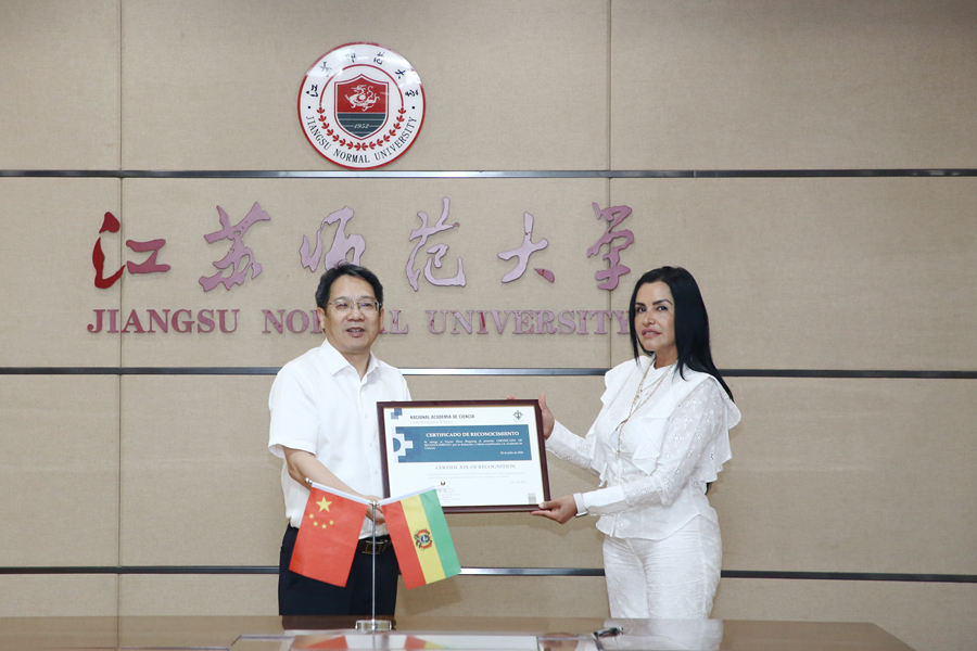 会上,校内各部门负责人介绍了本单位的科研情况。周汝光校长与洛尔吉亚院长签署了友好合作框架协议。洛尔吉亚院长还代表玻利维亚国家科学院为周校长颁发了“促进科技进步贡献奖”证书。在徐访问期间,玻利维亚客人还参访了我校技术转移中心、外国语学院和生命科学学院等机构。