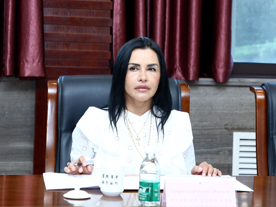 周汝光对代表团的来访表示热烈欢迎,并介绍了学校的基本情况和国际合作交流成果。他指出,学校特别重视与拉美国家高校的友好合作交流。学校主办或承办的“一带一路国际话语论坛”“中拉文明对话论坛”等国际会议吸引了来自拉美七国大使或总领事参加交流活动。学校今年5月与玻利维亚国家科学院进行了线上会谈。他期待,通过此次面对面交流,双方能在科学技术、“一带一路”国际合作研究及人文交流等领域开展更加广泛深入的合作。