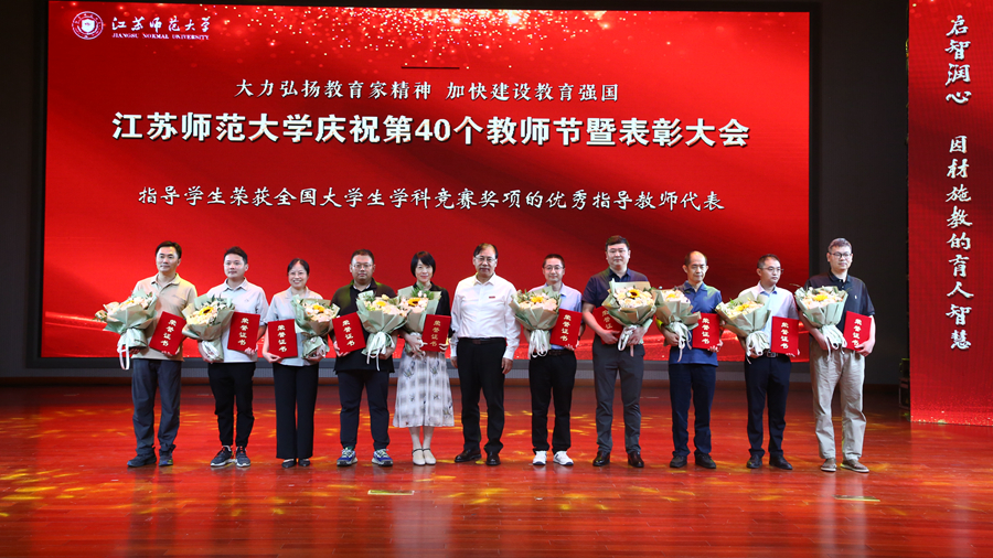 教育强国担使命,躬耕杏坛践初心。为庆祝第四十个教师节,我校于9月10日下午在马可音乐厅举办以“大力弘扬教育家精神,加快建设教育强国”为主题的庆祝第40个教师节暨表彰大会。在校全体校领导,江苏省教育基金会副秘书长杨明广出席会议,受表彰的先进集体和个人代表,校属各职能部门主要负责人,各学院主要负责人,新入职教师以及师生代表参加活动。