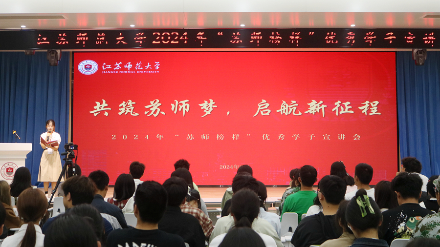 为全面贯彻党的二十大和二十届三中全会精神,落实立德树人根本任务,引导和激励广大同学做有理想、敢担当、能吃苦、肯奋斗的新时代好青年,9月25日,我校在泉山校区路演大厅举行2024年度“苏师榜样”优秀学子宣讲会,我校2024年度“苏师榜样”优秀学子代表、学生工作处相关人员以及2024级新生代表参加活动。