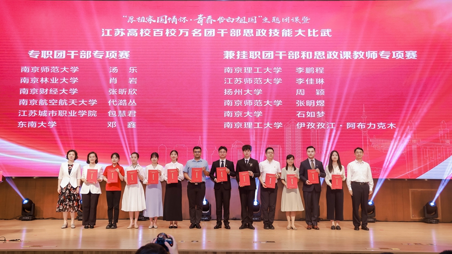 9月29日,由共青团江苏省委联合中共江苏省委教育工委、新华日报社、江苏省学生联合会共同举办的第四届江苏高校百校万名团干部思政技能大比武决赛在南京林业大学举行。经过决赛评审,我校荣获特等奖2项,一等奖2项,二等奖2项,特等奖总数并列全省第二。