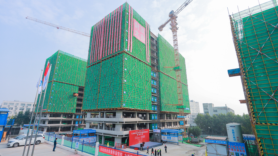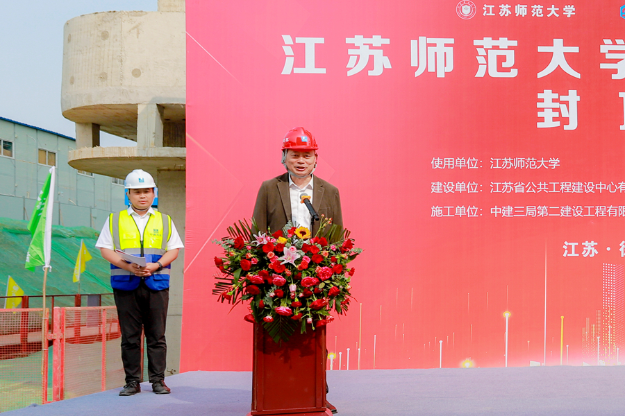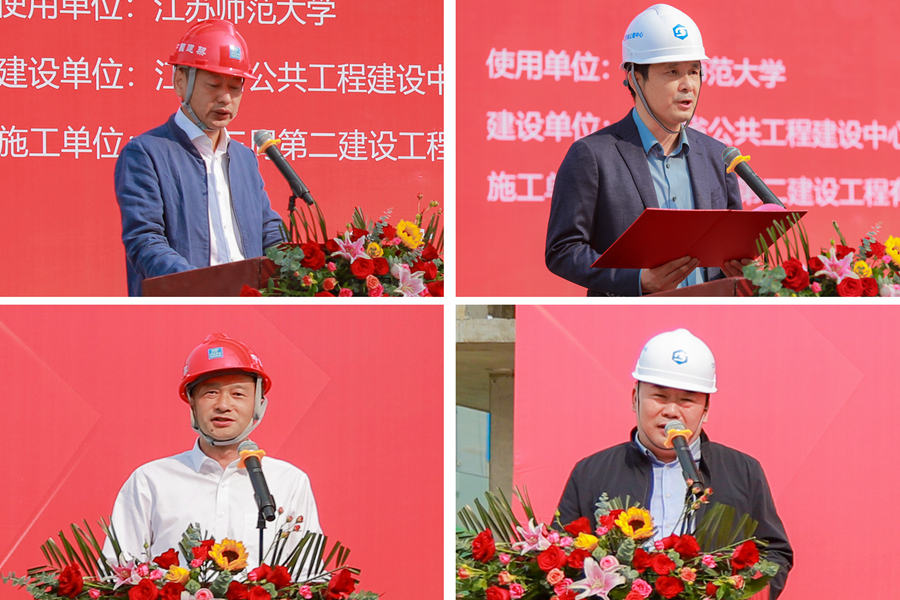 杜青周、沈志刚及各参建单位领导分别致辞,共同庆祝项目主体结构封顶这一重要里程碑事件,对项目建设进行阶段性总结并提出工作要求。张其飞在致辞中对项目建设工作给予充分肯定,并强调工程质量,百年大计,封顶只是项目建设的关键一步,后续工作依然艰巨。希望在省公建中心统一指挥下,各参建单位加强协同配合,严格施工程序,强化质量控制和安全管理,保质保量早日竣工,投入使用,惠泽万千学子。方忠宣布江苏师范大学学生宿舍楼正式封顶。