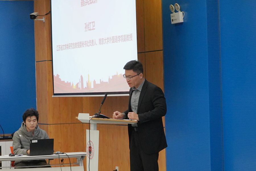 孙红卫在论坛开幕式讲话中指出,江苏省研究生学术创新论坛是在江苏省教育厅支持下,由各学科研究生教指委主办的重要学术交流平台,是彰显我省研究生教育走在全国前列的“金字招牌”。论坛旨在积极促进文学、语言学等学科的交流互动,组织开展研究生教育领域的合作,探索新的教学理念、教学模式以及人才培养方法,充分发挥江苏高等教育的特点和优势。本次论坛内容丰富,既有人工智能、后人类等前沿话题,也有中国古代文艺理论的传统话题;既有理论思辨研究,也有实践应用研究,很多论题紧扣当前江苏文化建设需求,可谓精彩纷呈。