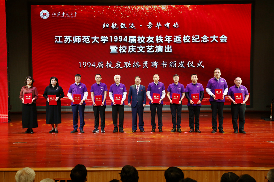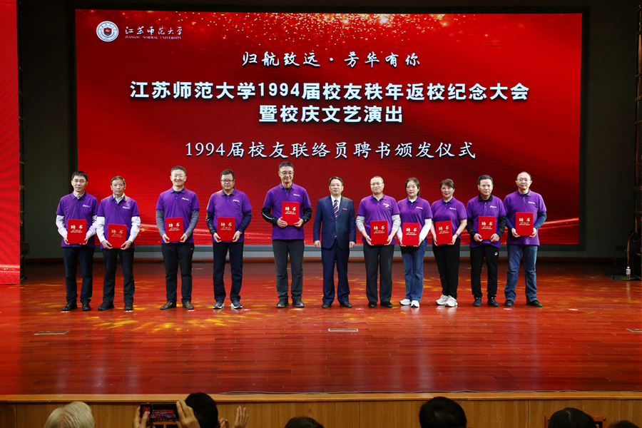为进一步完善校友工作机制,壮大校友工作队伍,加强母校与校友、校友与校友之间的联系,会上举行了校友联络员聘任仪式,周汝光代表学校为1994届校友联络员颁发聘书。