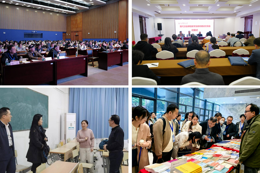 在专题报告环节,教育部语言文字应用研究所原所长张世平教授、苏州大学王建军教授、北京师范大学周荐教授、北京语言大学郭风岚教授分别以“习近平语言文字重要指示与国家语言政策”“‘黄廖本’《现代汉语》(增订六版)修订说明”“ 汉语词汇教学的理论与创新”“中文水平考试HSK全球推广与教材研发”为题作了主题发言。在分组讨论环节,各高校专家、《现代汉语》课程任课教师围绕“黄廖本”《现代汉语》各章节专题展开了热烈研讨。江苏师范大学文学院张爱民教授、苏州大学王建军教授分别主持了分组讨论和闭幕式,我校文学院李申教授作大会总结发言。与会专家一致认为,本次会议主题突出,成效显著,为更好推进现代汉语课程教学及教材建设奠定了良好的基础,必将团结更多的汉语学界专家和一线教学人员,为“黄廖本”《现代汉语》的完善和现代汉语课程建设贡献更大的力量。会议期间,高等教育出版社专家还前往泉山校区西教14号楼教室进行了课堂观察,与任课教师展开业务交流,并在分测中心一楼大厅举办了高等教育出版社图书展并向与会专家学者赠书。