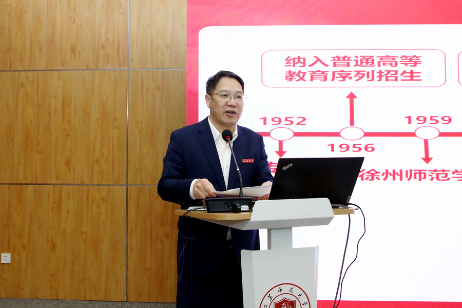 校长周汝光作题为《坚守师范本色 聚力创新发展 推动本科教育教学质量再提升》审核评估补充报告,从学校历史沿革、办学现状、成绩与特色亮点三个方面介绍学校的基本情况。他指出,近年来学校坚持师范教育主责主业,教师教育特色鲜明;坚持质量至上培养理念,教育教学成效显著;坚持服务国家战略需求,着力培育创新人才;坚持五育并举育人路径,促进学生全面发展;坚持深化国际交流合作,形成“留学苏师”品牌;教育教学成效全面提升。