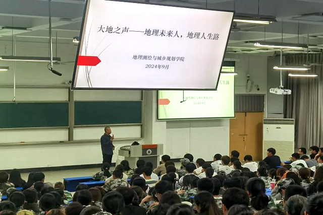 9月26日晚,校关工委党建辅导组组长、原城市与环境学院党委书记车先俊受邀为地理测绘与城乡规划学院的新生们作了“地理未来人,地理人生路”的专题讲座。车书记结合学校历史发展沿革和个人人生经历体会,深情回忆了自己与地测学院的情感联系。他从我心中的地理学、大学如何规划、立足现实和放眼未来等方面与同学们进行了深入交流。他指出,人生看起来很漫长,但关键性的阶段就那几年,每一位同学都是自己人生的建筑师、设计师。在日常生活中,师生情、同学情是人生中最为纯洁的情感,他教导同学们要遵章守纪,心态平和,学会容人、容事、容己,珍惜大学时光拥有的美好缘分。“自立自强、永不言弃,尽心尽力、终身无悔”,这是车书记给予大一新生们最好的人生馈赠。