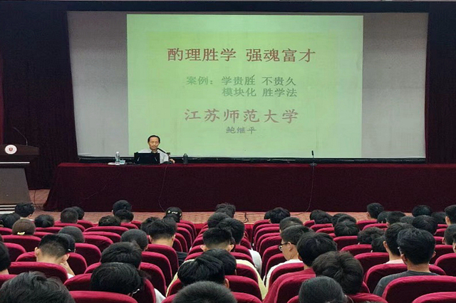 9月10日下午,机电工程学院邀请校关工委“致远工作室”成员鲍继平教授在敬文报告厅举办了主题为“酌理胜学,强魂富才”的新生入学教育专题讲座。鲍教授以纯英文开场白欢迎大家的到来,并通过哲学辩证和科学提效的角度切入,详细介绍了英语学习方法的重要性。他的讲授轻松幽默、互动热烈,现场掌声、笑声不断。鲍教授通过生动的例子和幽默的语言,带领新生们在轻松的氛围中感悟学习要义。最后,他还以激昂的话语给予同学们最美好的祝愿。讲座当日正值教师节,全体新生齐声用英文感谢鲍教授的倾心讲授并送上诚挚的教师节祝福。