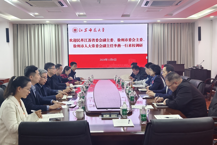 11月6日下午,民革江苏省委会副主委、民革徐州市委会主委、徐州市人大常委会副主任李燕一行来我校调研。校党委副书记蔡国春出席调研活动,统战部、人事处、科学技术研究院、物理与电子工程学院、化学与材料科学学院等单位有关同志参加调研座谈。
