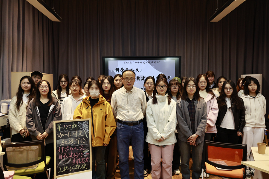 11月13日下午,第171期“咖啡时光·教授有约”活动在泉山校区三食堂六点汇举行。历史文化与旅游学院王振红教授就“科学与人文——自我构建的多维思考”这一主题与在场同学进行交流。